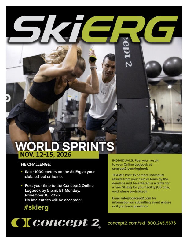- Race 1,000 meters on the Concept2 SkiErg November 12-15, 2026.